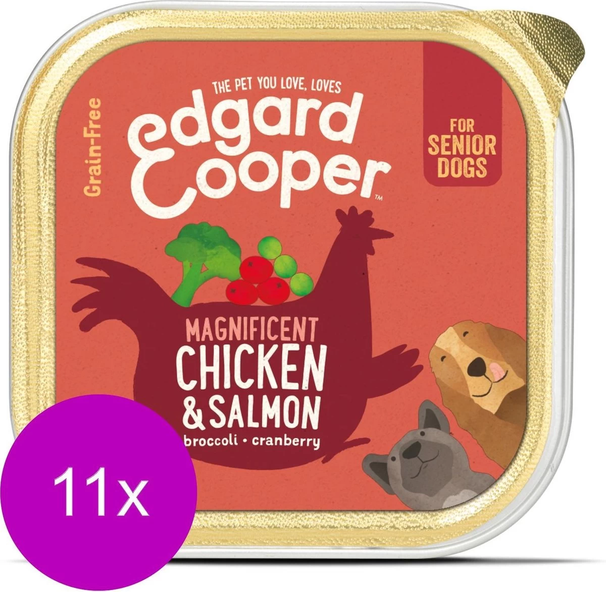 11x Edgard & Cooper Kuipje Vers Vlees Senior Hondenvoer Kip – Zalm 150 Gr