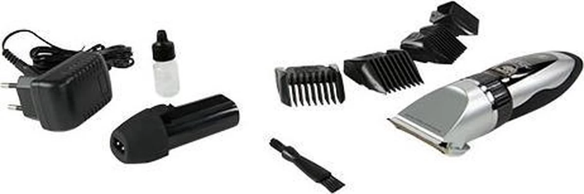 - De set bevat extra accu, olie, borstel en oplader