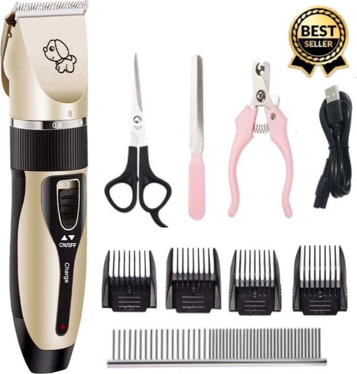 Verdient de vacht van uw huisdier en nieuwe look? Gebruik dan onze dierentondeuse voor het trimmen van dik of dun haar. Handig, snel, soepel en met weinig geluid. Geschikt voor honden en katten met een te lange vacht. De set bevat maar liefst: een tondeuse, 4 opzetkammen, een kam, een nagelvijl + knipper, een schaartje, een schoonmaakborsteltje en oplader