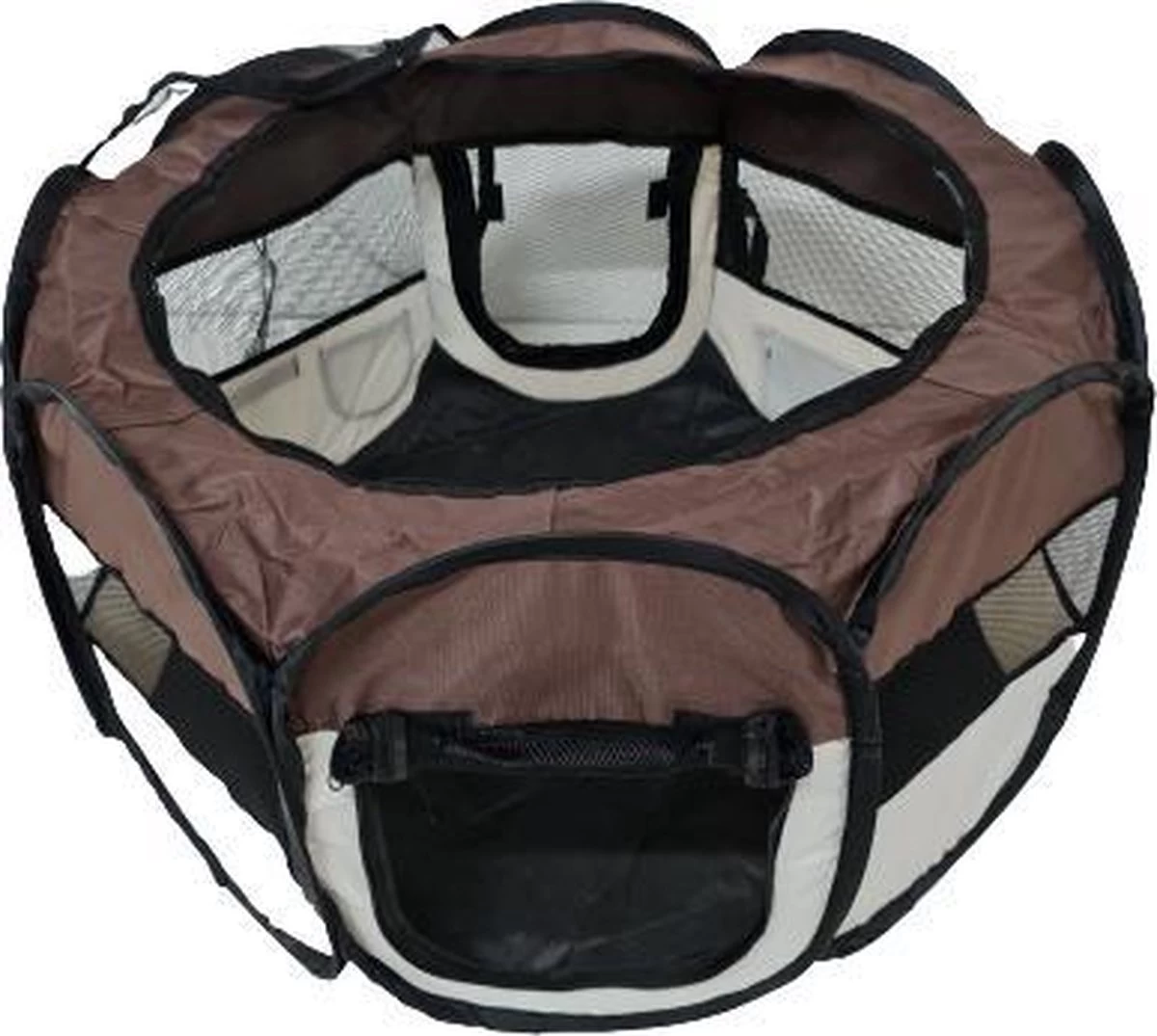 Met deze achthoekige Puppy-ren zijn uw lieve hondjes veilig en liefdevol verzorgd. Ook zeer geschikt voor puppy training, of als slaapvertrek of om lekker te ravotten. De Puppy-ren is ideaal voor thuis of op reis, voor binnen en buiten. Niet alleen geschikt voor puppy’s, maar ook cavia’s konijnen. U kunt het ook makkelijk meenemen in een comfortabel draagtas.