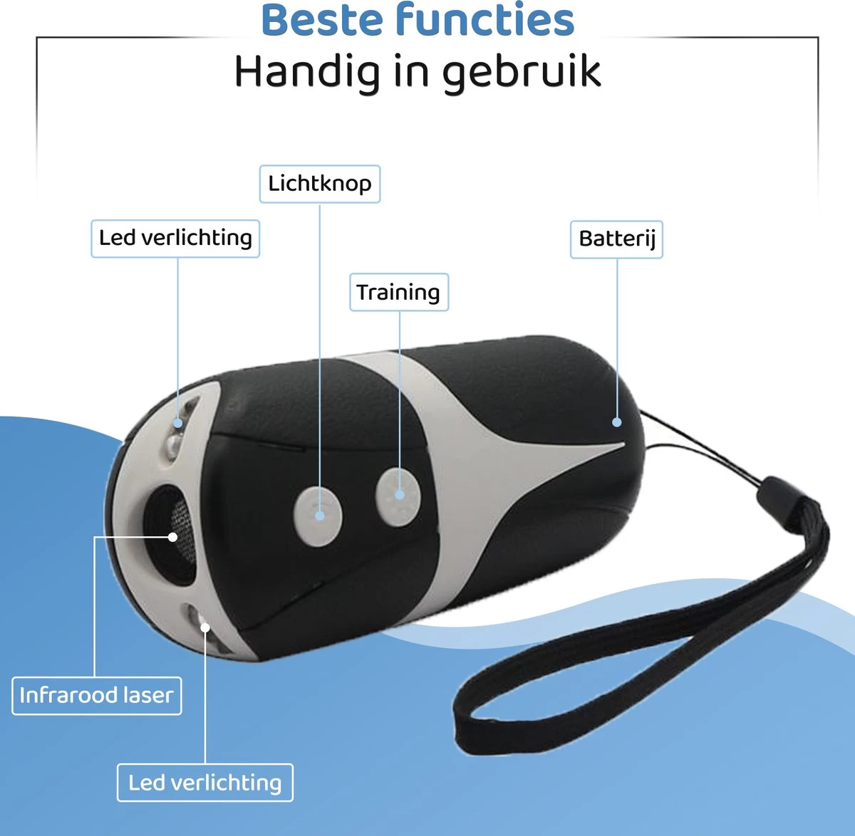 Het meest vertrouwde en verkochte anti-blafapparaat van 2023 is nu beschikbaar! Hou jij van je hond maar blaft je hond teveel? Dan is dit anti- blafapparaat de perfecte oplossing. Onze anti-blafapparaat is als beste uit de test gekomen en is ontworpen in 2023, dus is daarnaast ook het nieuwste model. Het apparaat heeft een anti-blaf functie, een trainings-functie, en een zaklamp ( Led ) functie. Dit is het eerste goedwerkende model met alle 3 de functies in een. Daarnaast is dit blaf-apparaat het meest diervriendelijke model!