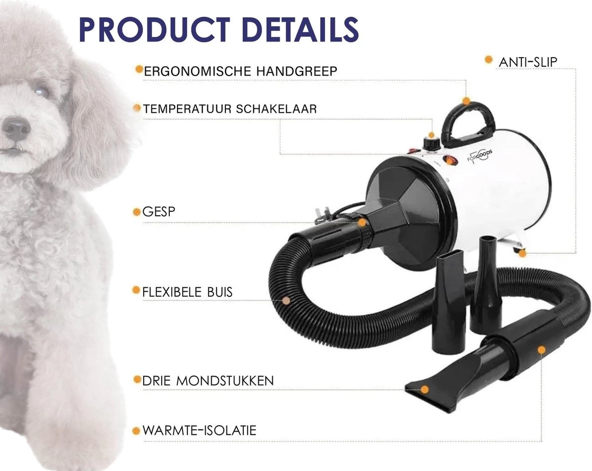 Forgoods Professionele Hondenfohn – Waterblazer Voor Honden – Hondenfohn Met 4 Opzetstukken – 2800W Verstelbaar Vermogen – Roze
