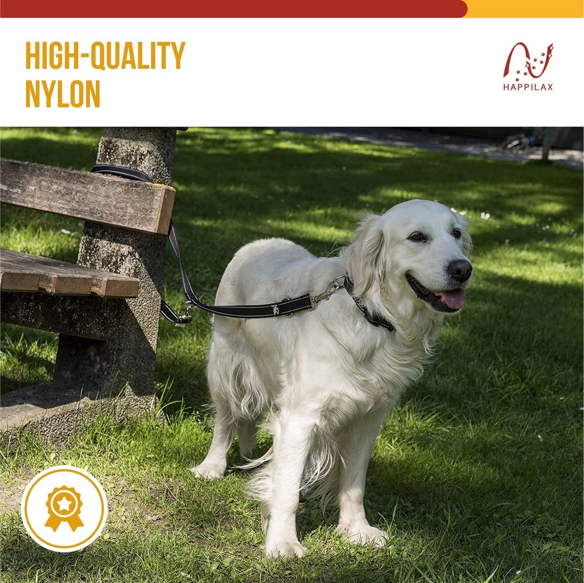 Happilax Dog Leash 2m Adjustable – Black/Reflective – 3-Step Adjustable Leash – Double Leash, Tug Leash – Geschikt Als Hondenriem Voor Grote Honden Of Als Sleepriem Voor Kleine Honden.