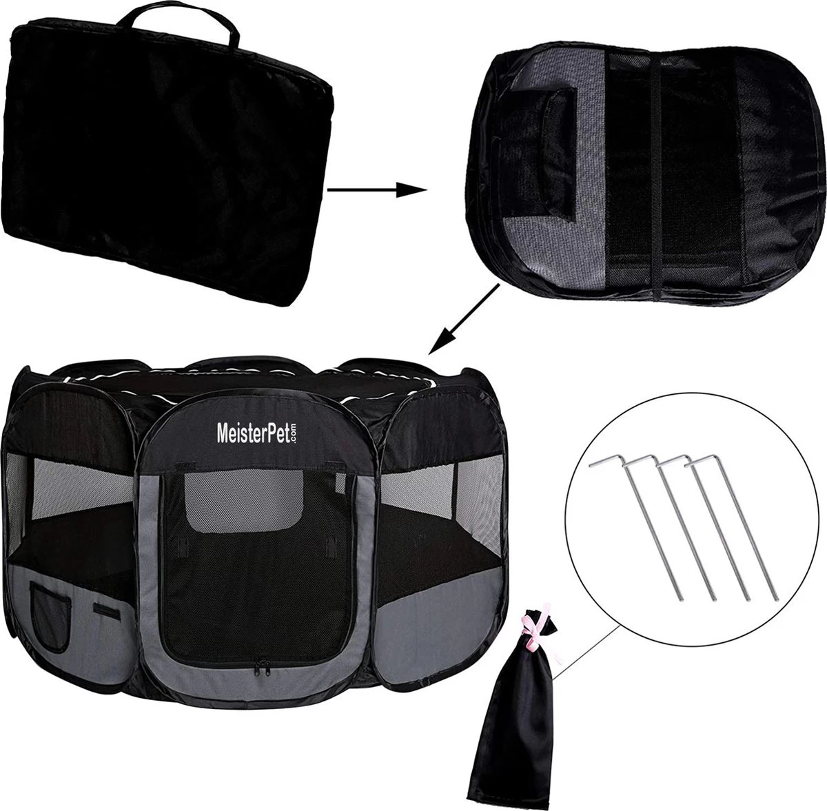 Het Meisterpet.com Puppyren gaas doek-dak laat zich gemakkelijk openen en sluiten dankzij de ritssluiting