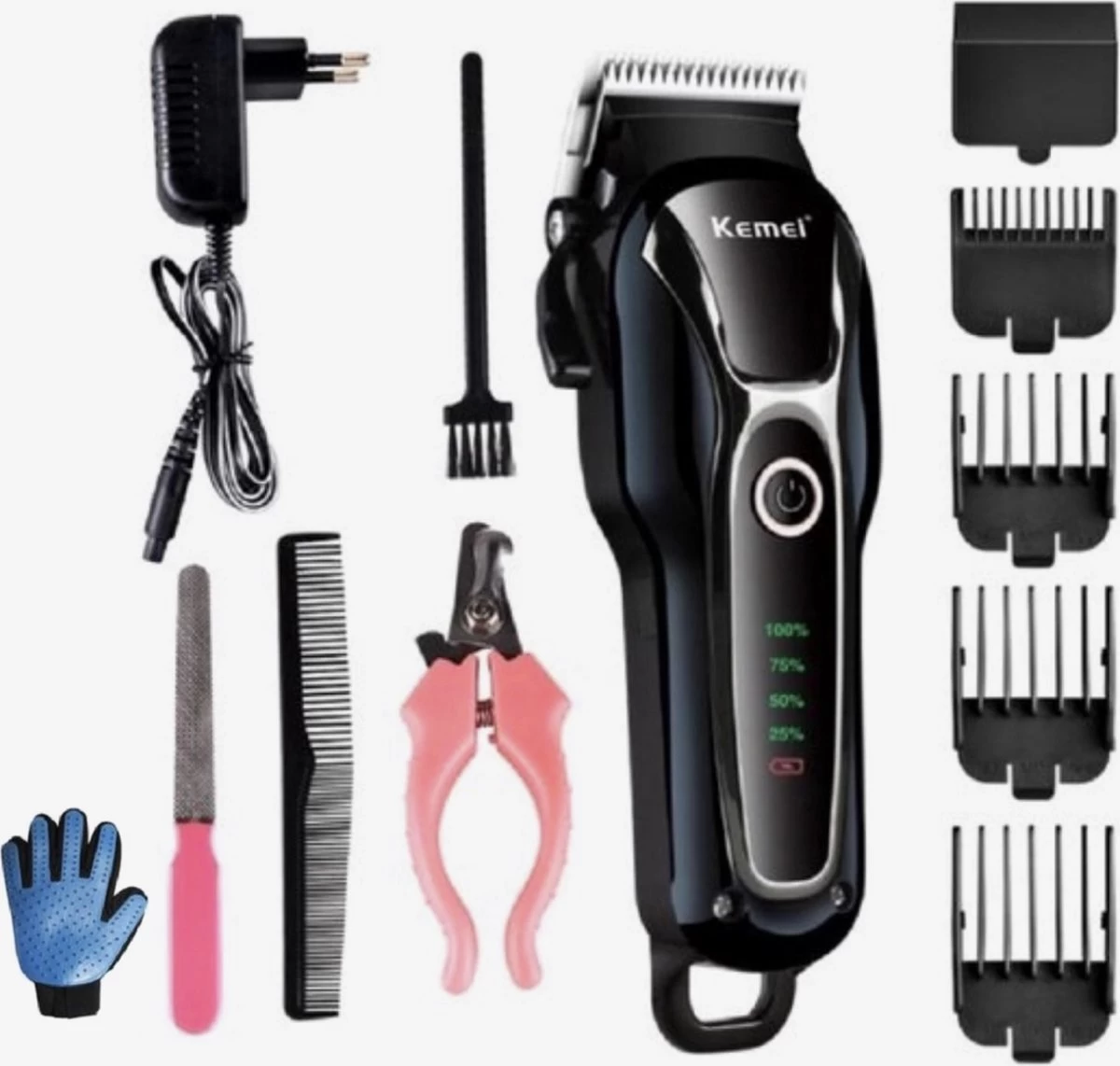 Trim je trouwe viervoeter simpelweg thuis! De professionele dierentondeuse is perfect voor honden en katten met lange, korte, dunne of dikke vacht. Deze set bevat 4 verschillende opzetkammen waardoor ieder soort vacht geschikt is om te trimmen. Er wordt een oplaadkabel meegeleverd en ook een schoonmaak borstel voor de tondeuse. De complete set dus voor je harige vrienden!
