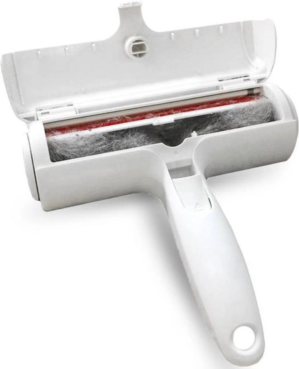 Zoals je kunt zien op de foto’s zie je dat er een opvangbakje aanwezig is in de roller. Wanneer je snel op en neer beweegt op een plek waar haren liggen komen de haren terecht in het opvangbakje. Pak nu gemakkelijk de katharen en hondenharen direct van alle banken, bedden, tapijten, dekens, dekbedden en nog veel meer. Wanneer het opvangbakje vol is kun je het bakje openen en vervolgens de haren deponeren in de afvalbak. Zo Simpel is het. In de afbeeldingen vind je een handig voorbeeld hoe je de borstel het beste kunt gebruiken.