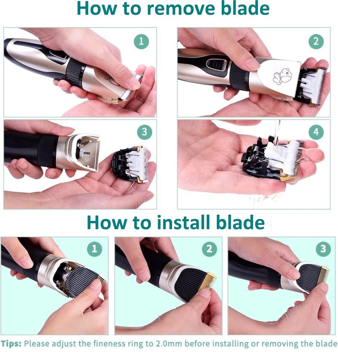 • Werk de vacht van je huisdier veilig en met minimale klank niveau