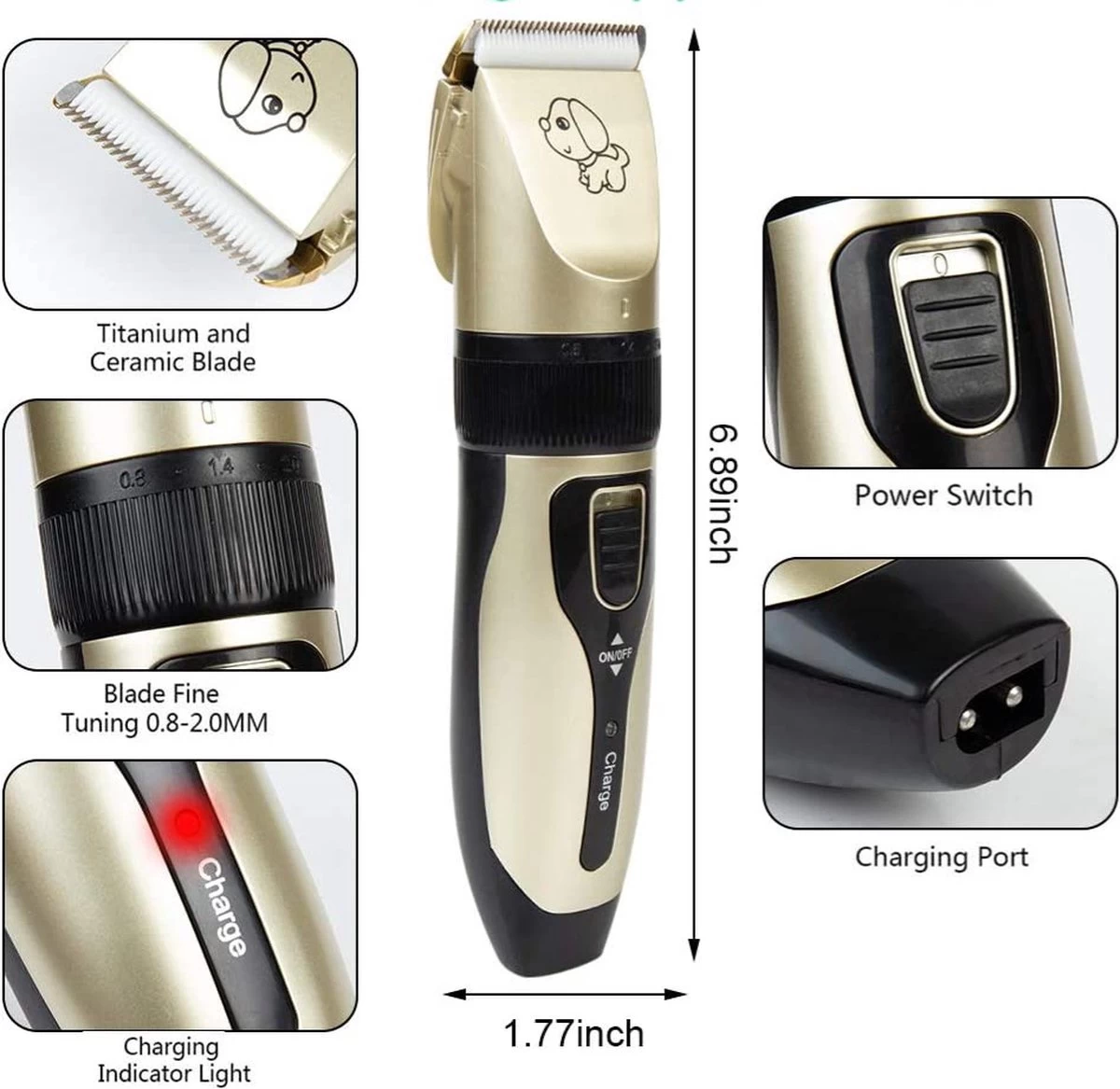 Eenvoudig en snel de vacht van je hond bijwerken! Geschikt voor iedere vacht. De draadloze tondeuse set wordt geleverd met 4 verschillende opzetkammen zodat je de juiste kam kunt gebruiken voor de juiste vacht en lengte. Tevens heeft de tondeuse vijf verschillende standen waarmee je kunt bepalen welke lengte van de vacht wordt afgeknipt. De tondeuse is geschikt voor allerlei soorten huisdieren, bijvoorbeeld je hond of kat. Verlaagde klank niveau zorgt voor minimale reactie vanaf je huisdier.