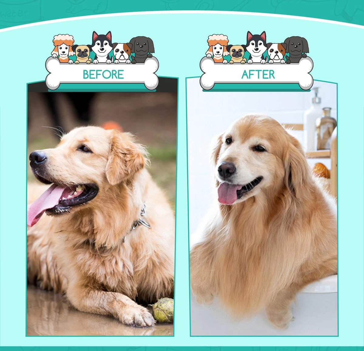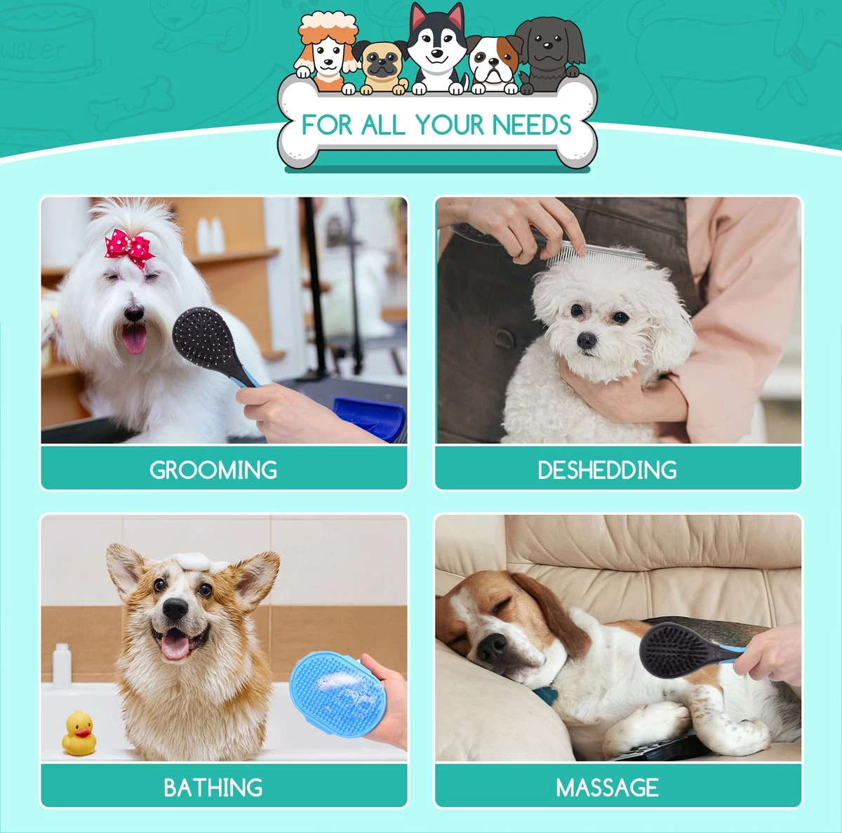De zachte hondenborstel van Nobleza verwijdert gemakkelijk los haar, stof en vuil. De lange en korte borstelharen zijn volledig gemengd, krassen niet op de huid van uw huisdier en zijn perfect om te baden en te masseren. Als u moeite hebt om water door de vacht van uw huisdier naar de huid te krijgen tijdens het baden, probeer dan deze borstel. Het pakket bevat een verzorgingsborstel, kam en badborstel, het is de ideale geschenkdoos voor uw huisdier.