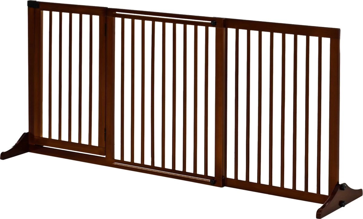Onze poort is een veilige en efficiënte manier om je huisdieren te beschermen en tegelijkertijd een decoratief tintje aan je huis toe te voegen. Deze uitschuifbare poort heeft 3 aparte panelen. Eén vleugel doet ook dienst als deur waar je huisdier gemakkelijk in en uit kan stappen. Het hek wordt geleverd met een veiligheidsslot en steunvoeten om je huisdieren te beschermen. Een geweldig product voor het blokkeren van deuren, gangen en trappen!
