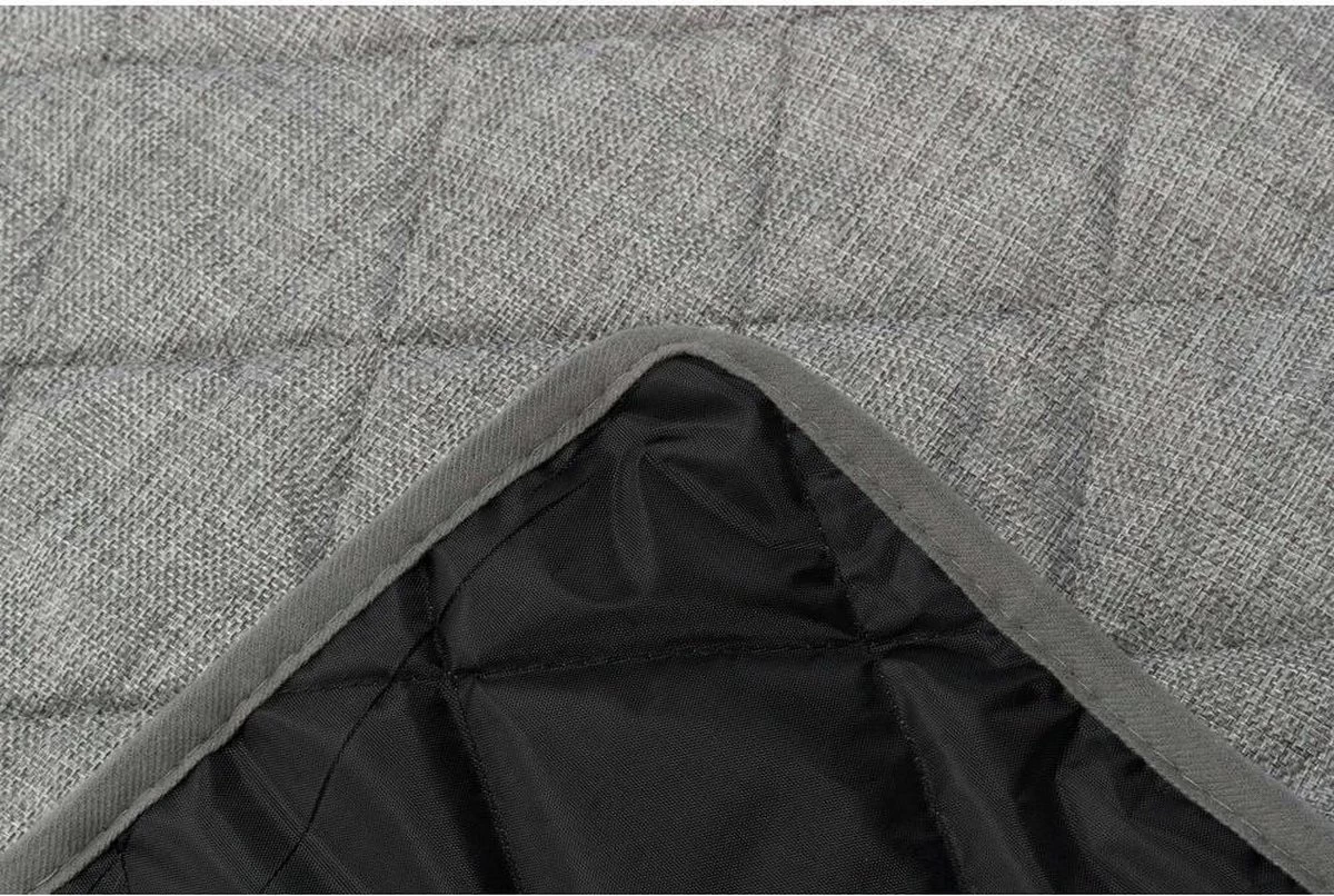 Met een lekkere dikke zachte rand rondom het zitgedeelte waar ze hun kop op kunnen leggen. Het lange deel valt gedeeltelijk over de bank, zodat als de honden opspringen de voorkant van de bank ook netjes blijft.