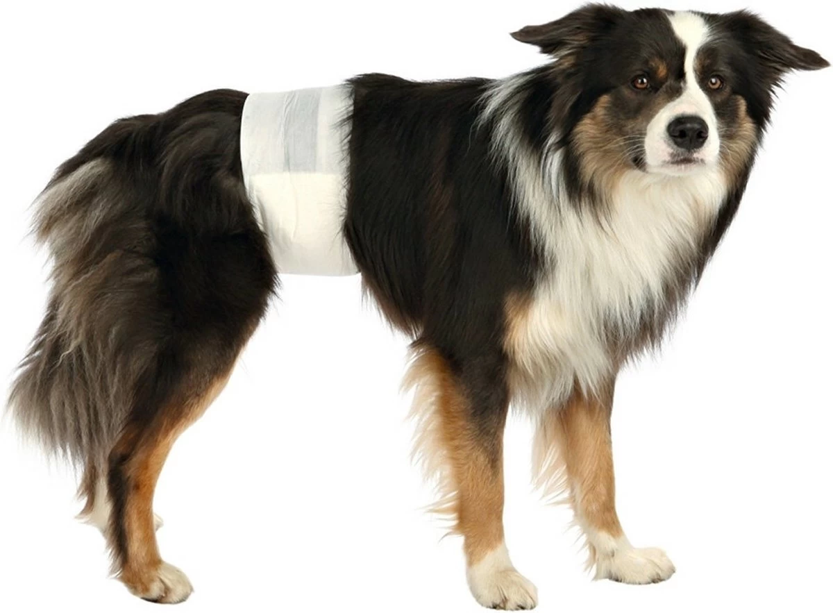 Deze Trixie Hondeluier Reu in de maat L/XL 12 stuks is een wegwerpluier speciaal gemaakt voor mannelijke honden die incontitent zijn door operaties, ouderdom of onderweg.